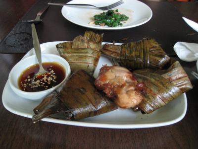 ガイ・ホー・バイ・トゥーイ(鶏肉のヤシの葉包み揚げ)