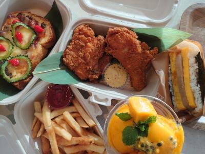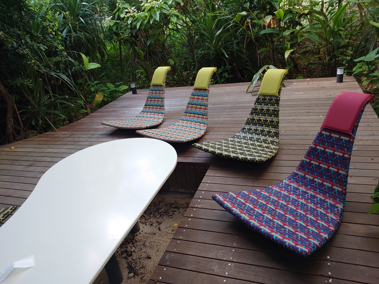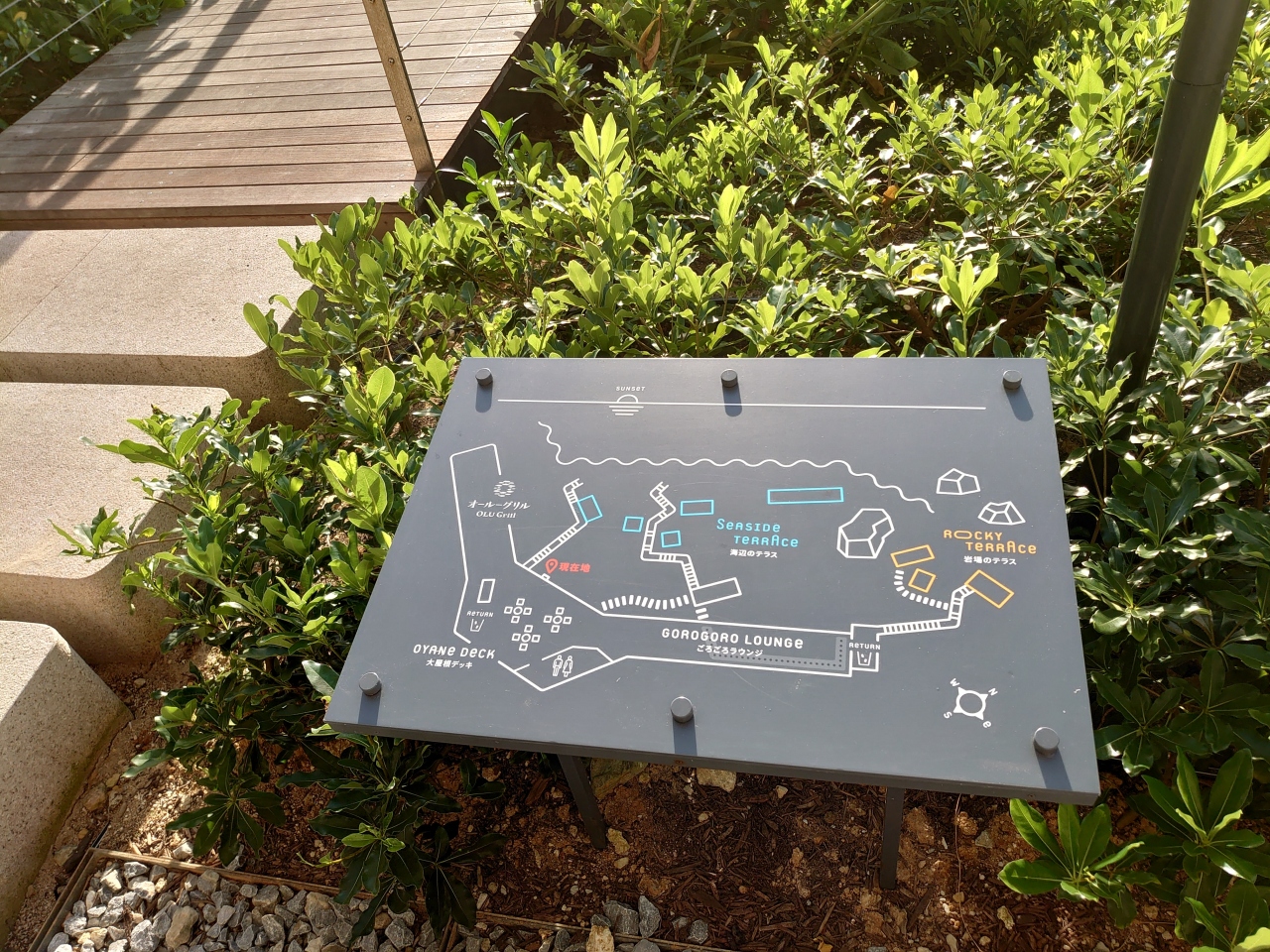 エリアが、海辺のテラス・岩場のテラス・大屋根デッキ・ごろごろラウンジなど、大きく4つありました。好みにあった場所を決めてから、大屋根デッキ横にあるフードコーナーで注文します。イメージとしては、ショッピングセンターのフードコートといった感じです。