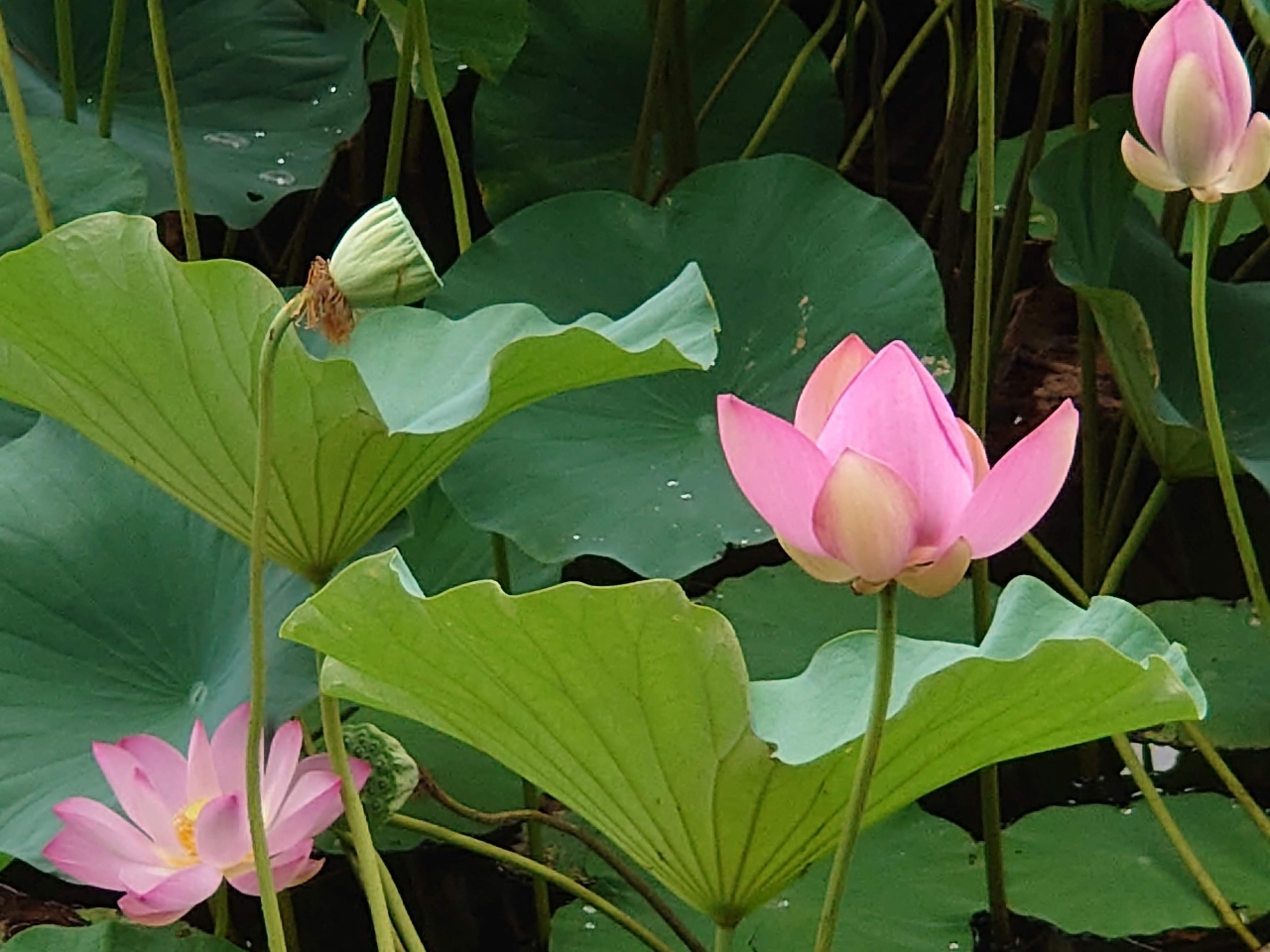 8月で花は期待していませんでしたが、蓮池に大輪のピンクの花が咲いていました。