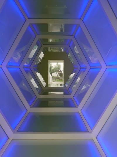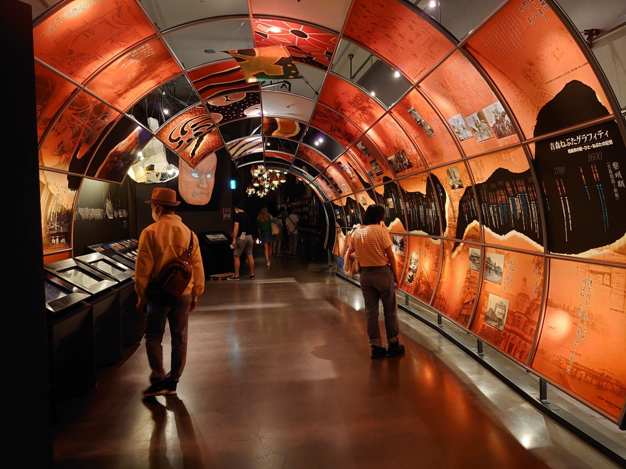 有料展示エリアは、4階が入口です。3階は、らせん状の回廊をゆっくりと下りながら映像を鑑賞します。映像は、大画面スクリーンで関門海峡の歴史を知ることが出来ます。