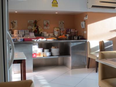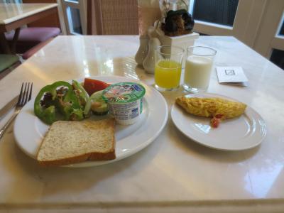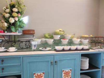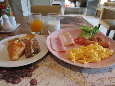 朝食は前日にメインを4種類ほどのメニューの中から1つ選ぶ方式で決して種類が多いほうではありません。飲み物、パン、ヨーグルト、果物などは朝食場所で自由に食べれますがコーヒーはインスタントの粉でした。スタッフは皆フレンドリーで親切でそれにおそろいのポロシャツが印象的でした。