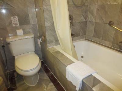 ホテル、飛行機ともに未定のかなりお安いツアーで指定されたのがこのホテルで2度目の宿泊でした。今回はバスタブがあるタイプの部屋でしたが、このバスタブがなんとも使い勝手が悪くなくてもいいかなと思うほどでした。バスタブの深さはあるのですが長さがなく気を付けてバスタブに出入りしないと転びそうでした。