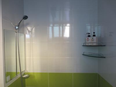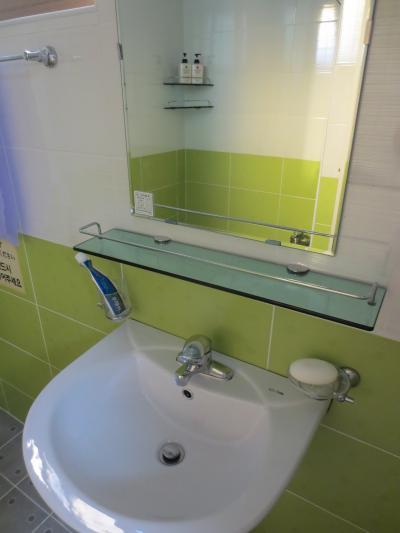 部屋の中は明るく、浴室はシャワーのみですが水圧もあり一人で使用するのには充分な広さがありグリーンとホワイトのタイルで統一され清潔感がありました。