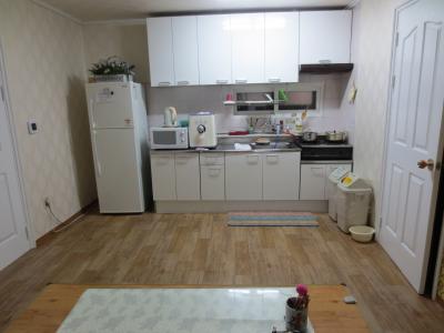 私が宿泊したのは2階のシングルで部屋の中にはベッド、テレビ、収納を兼ねた鏡台、ドライヤー等があり、浴室(シャワーのみ)とトイレは共同でした。台所もあり調理をしようと思えば道具がそろっているので可能です。1階のには洗濯機もあったので長期滞在者にはとてもいいのでは。2階には3部屋あったので満室であればもしかすると浴室とトイレの使用に気を使わなければならないかもしれません。たまたま私は滞在中独り占め状態でした。寒い2月に宿泊しましたが床のオンドルが暖かくて韓国だなぁと感じさせてくれました。部屋にいると周りが静かで家にいるような感覚になりました。また機会をみつけて宿泊したいと思っています。- 旅行時期