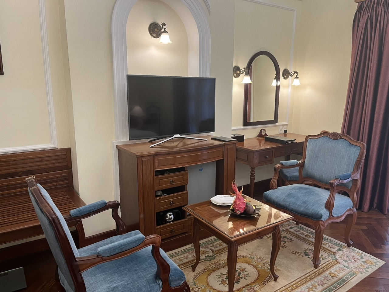 ホテルの外観、内装、お部屋、朝食、ルーフトップバーなどはさすが老舗だけあって申し分ありません。強いて言えばエアコンの調整方法が良くわからなかったことと、バスルームは多少古めかしくなっていることぐらいだと思います。