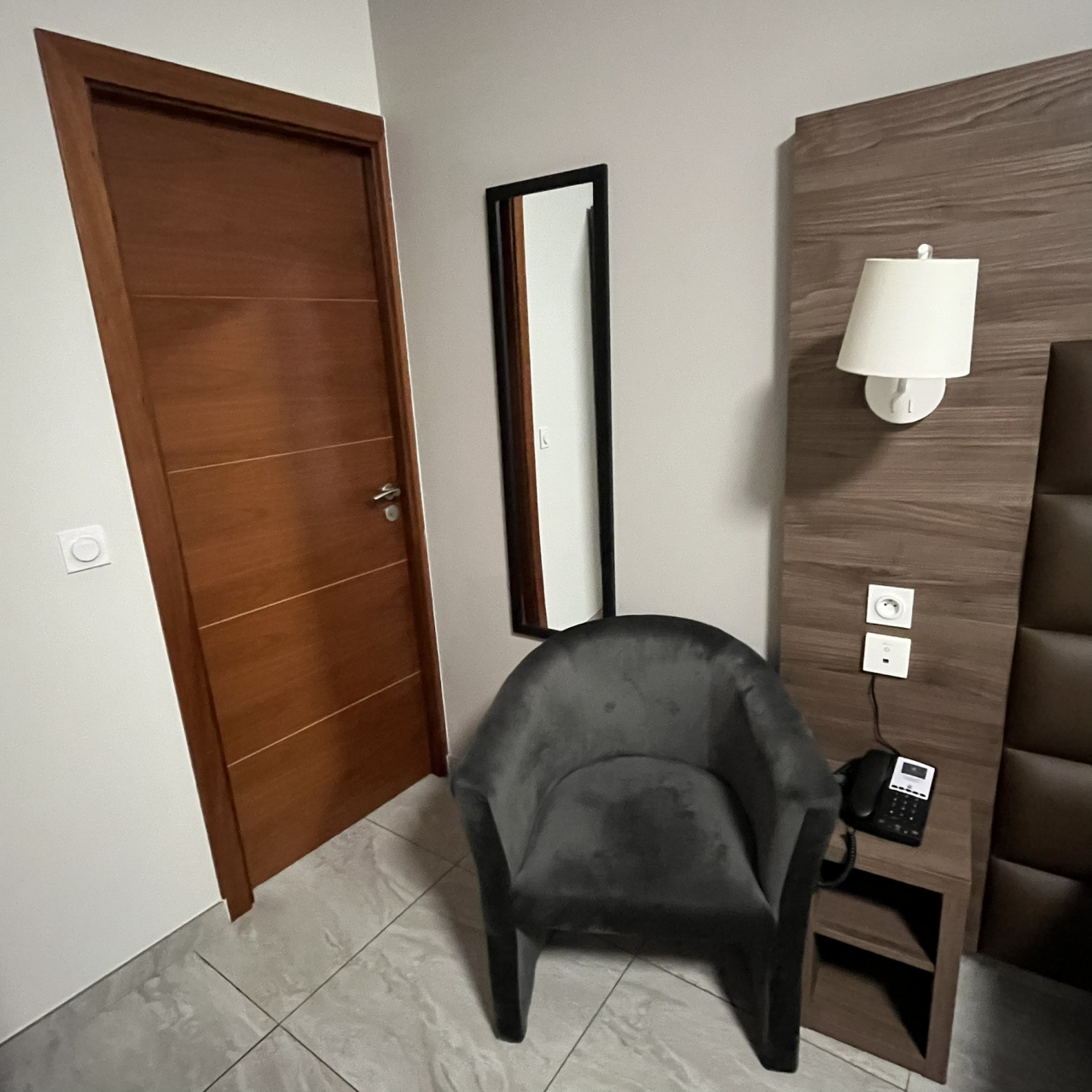 ニーム駅から徒歩10分ほど歩きますがメゾンカレなどの旧市街に隣接した便利な立地です。またホテルの前にはメリーゴーラウンドがあったりレストランも数多くあり、賑やかですので、夜間日没後でも治安上の問題はありません。