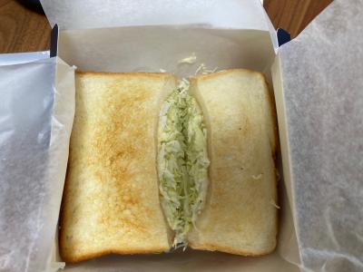 メンチカツはホットサンドでキャベツがはみ出るほどボリュームがありマスタードがきいていて美味しかったです。