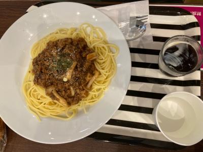 ランチに数量限定のハンバーグセットとパスタセット、好きなパン2つ+ドリンクセットを注文しました。