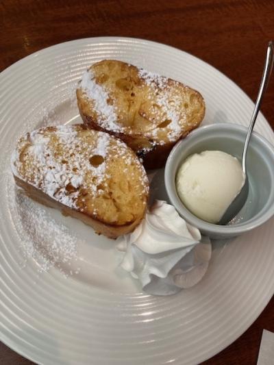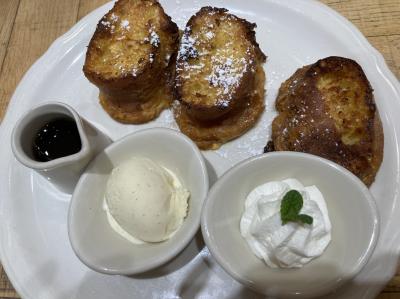 フレンチトーストはカスタードソースに浸されているのでメイプルシロップをつけなくても美味しかったです。