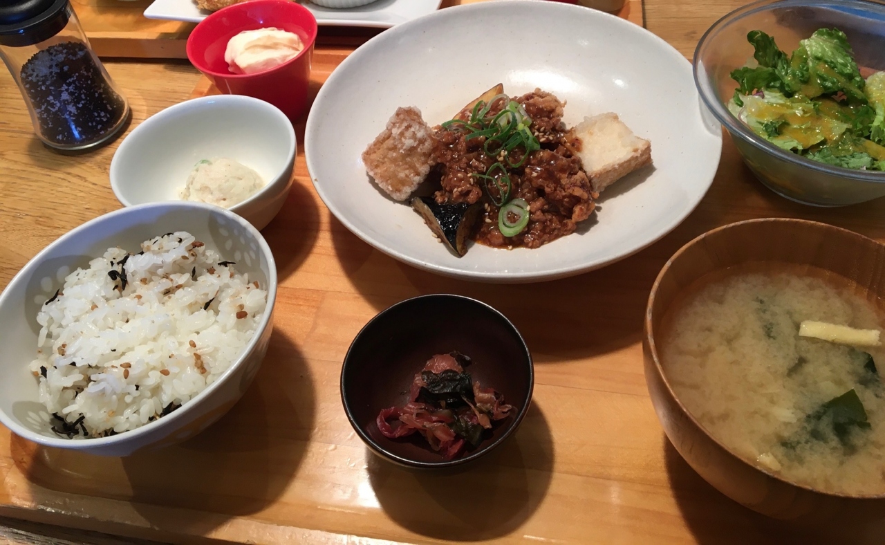 味噌汁とごはんはお代わり自由でごはんは白米とひじきご飯から選ぶ事ができました。