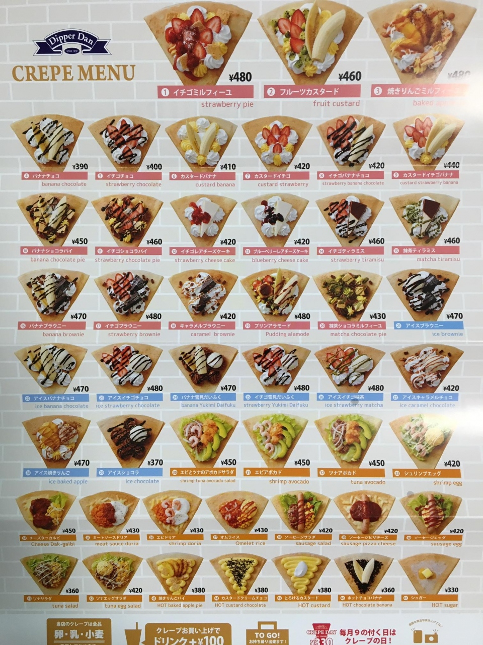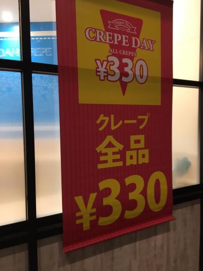 9のつく日は、クレープ全品330円です。
