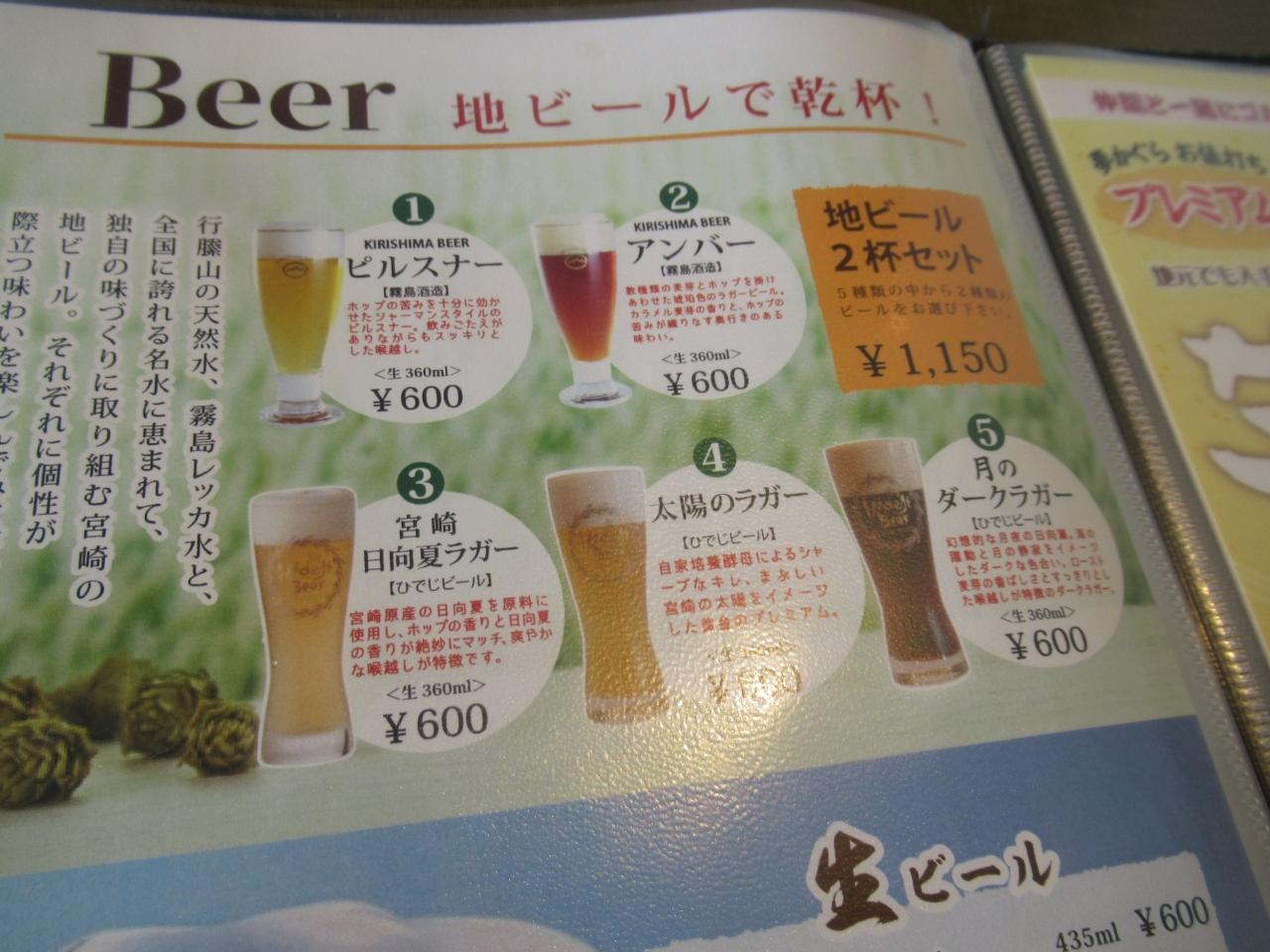 メニューには宮崎地元の料理が豊富に揃ってました。