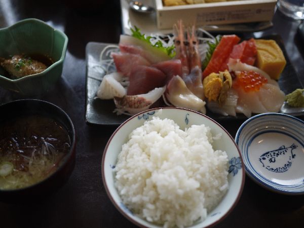 海鮮定食は種類も量も多い刺身で、