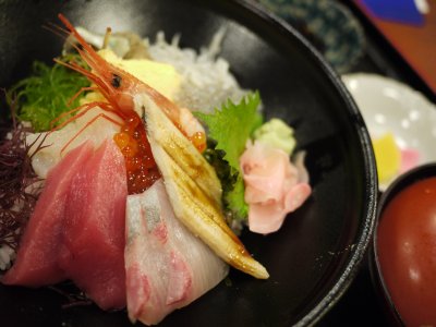 頼んだ海鮮丼(1900円程度)も伊勢海老汁(1500円程度)も、