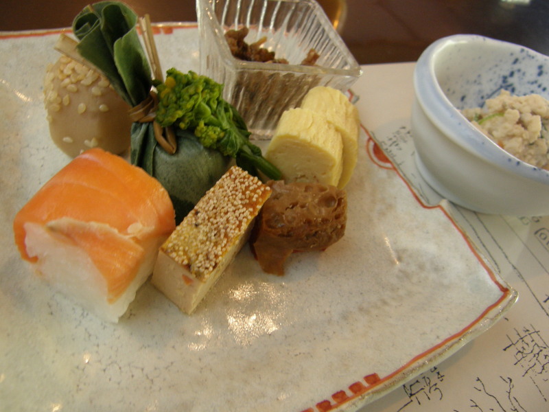 料理と豆腐、天ぷら、筍ごはんをいただきました。