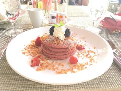 食べたかったピンクのパンケーキ♡♡本当にピンクだ(´⊙ω⊙`)しかもお...