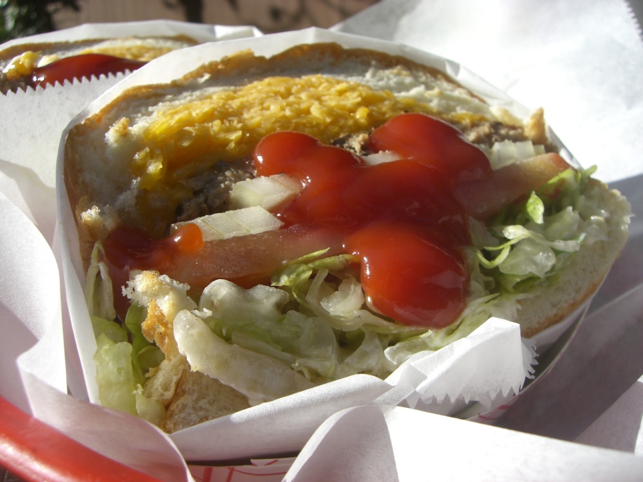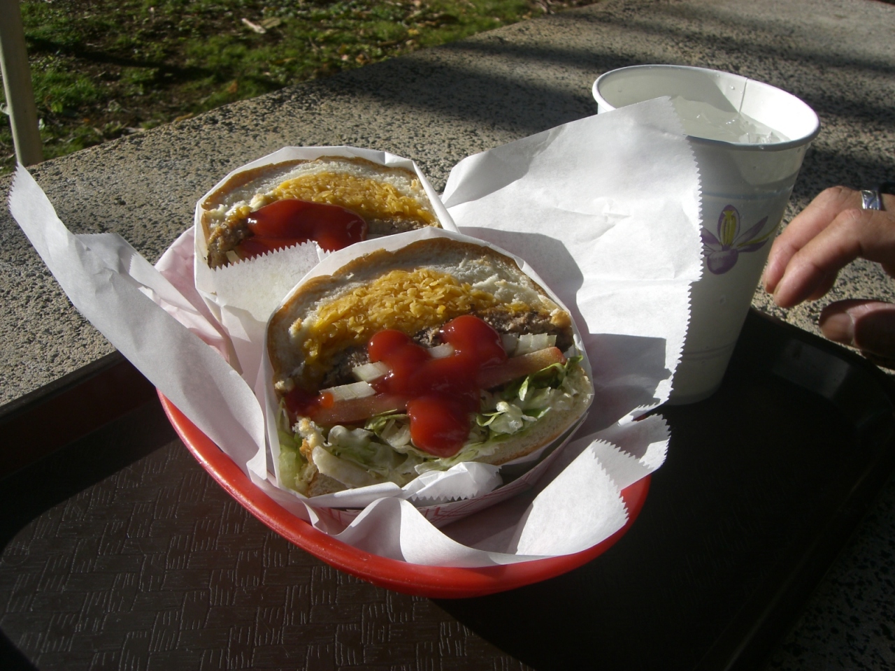 半分に切ってあり、それぞれ紙で包んでくれているので食べ易いです♪