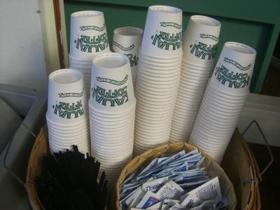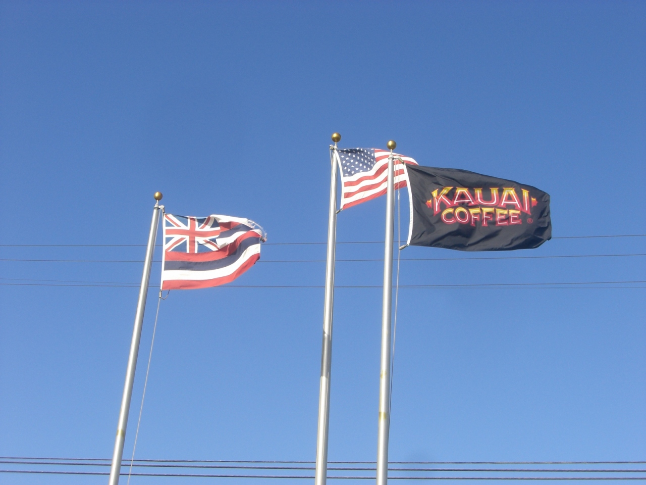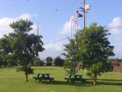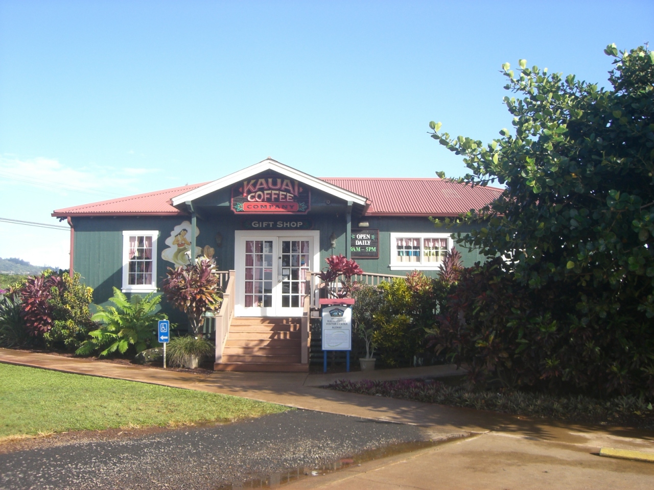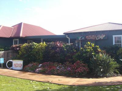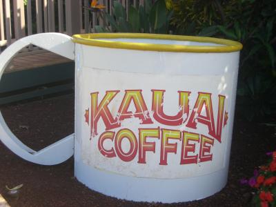 敷地内には、カウアイコーヒーの国旗や、デカマグカップがあるので