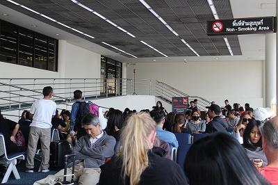 成田行きの搭乗口。外国人比率が高い。