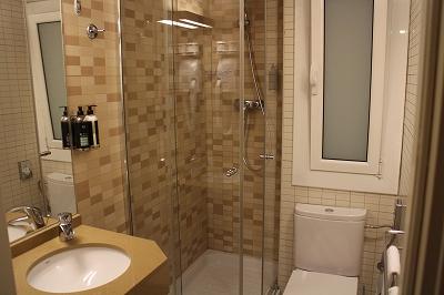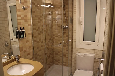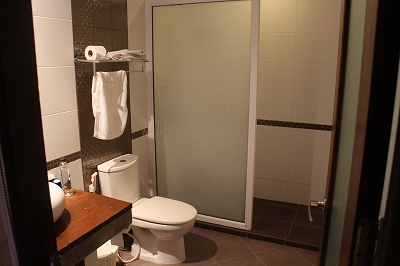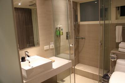 シャワーブースのみでバスタブはない。シャワーブースは洗面から独立している。東南アジアのホテルのバスルームのように洗面やトイレが浸水する心配はない。
