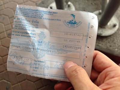 パタヤからバンコクへの移動は手段はいくつかあるものの、1人で安く済ませるにはやはりバス。料金も124バーツ。