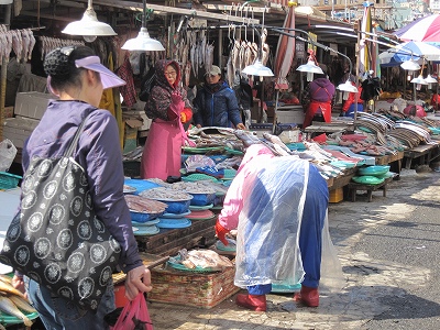 そこそこ規模の大きな水産物の市場。観光客向けというよりはローカル色の濃い市場。まだ生きている魚から〆たばかりの魚、干物など雰囲気は違うけど築地を感じる。この港から九州に向かう人はお土産で購入もありかもしれない。検査をクリアするかわからないけど。何か買う目的がなくても南浦洞に来たらブラっと立ち寄る価値はあると思う。