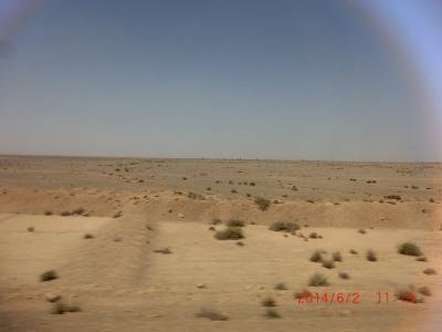 窓から景色も見えました。景色は殺風景ですが。インドの列車の窓とは大違い...