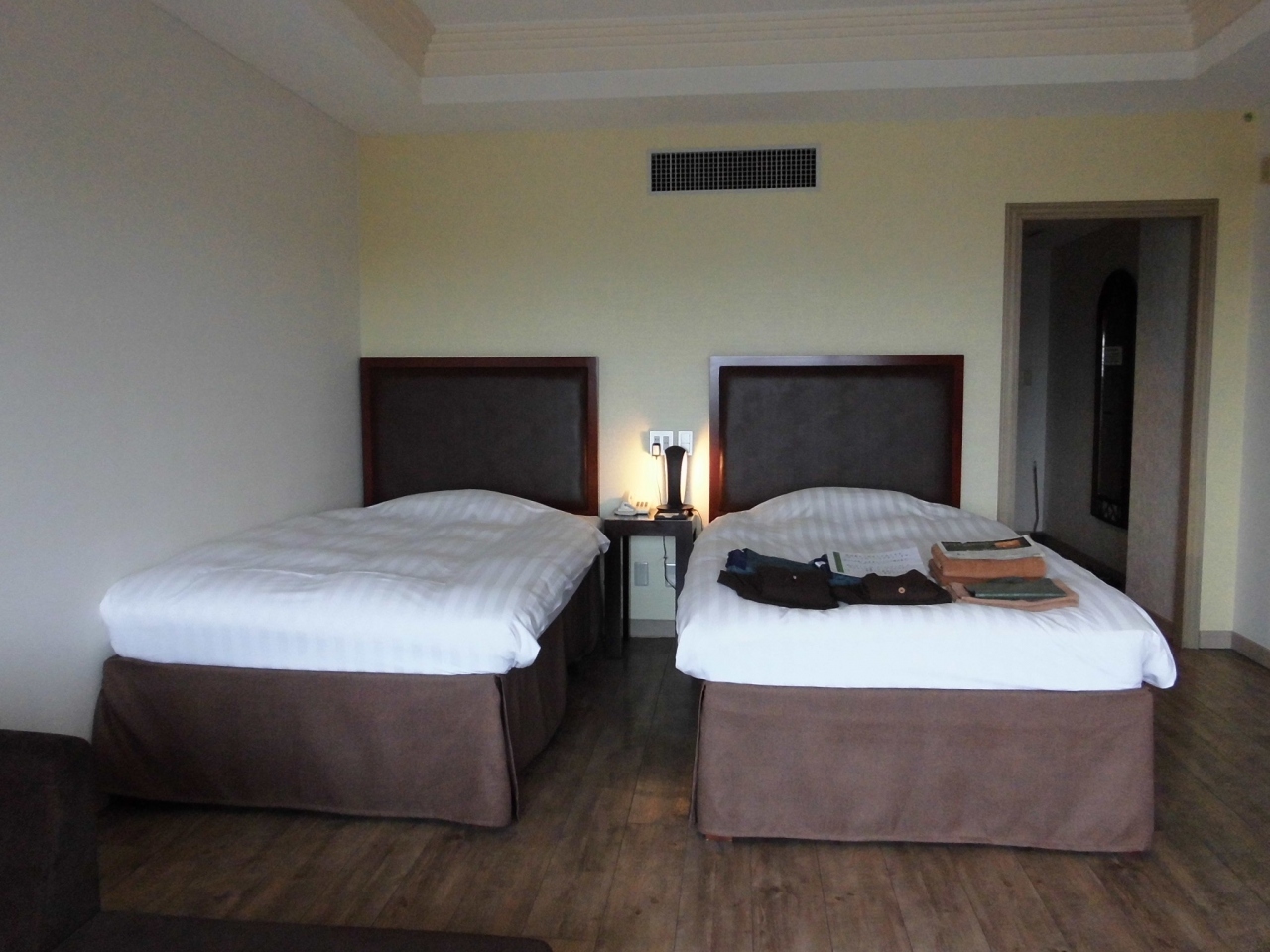 シャトルバスがホテル前まで行くので荷物があっても大丈夫です。フロントのお姉さんはとても丁寧に案内をしてくれました。ホテルがいくつかの棟に分かれていて私たちが泊まったのは「凪の音ホテル」です。広くて明るい部屋で、ゆっくりできました。