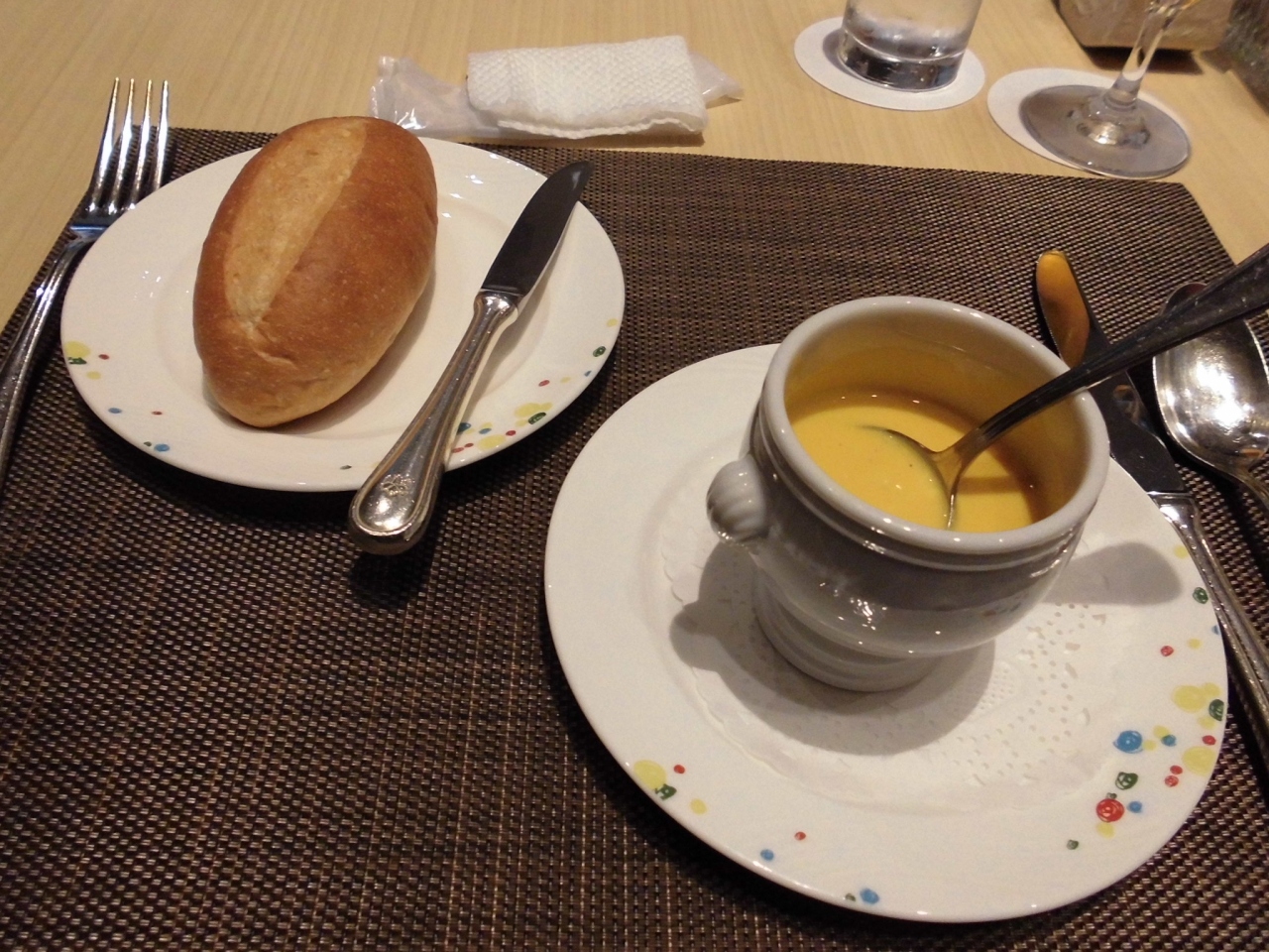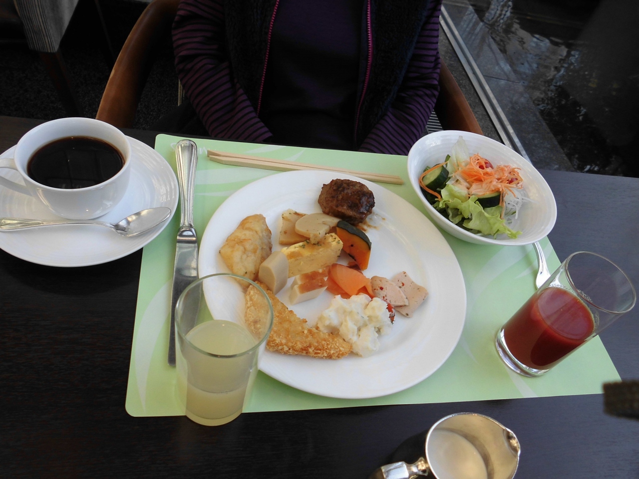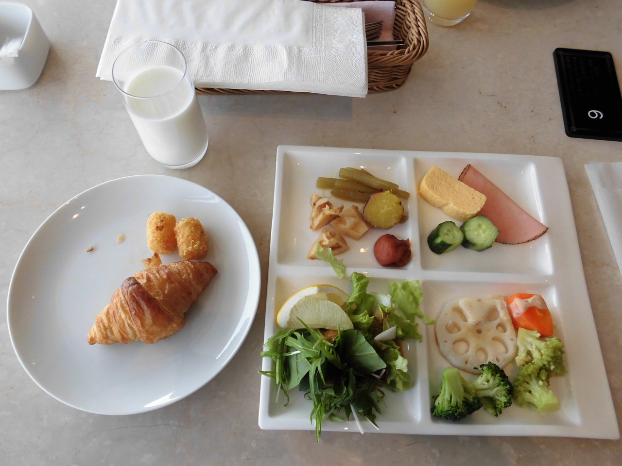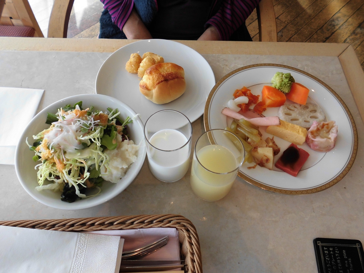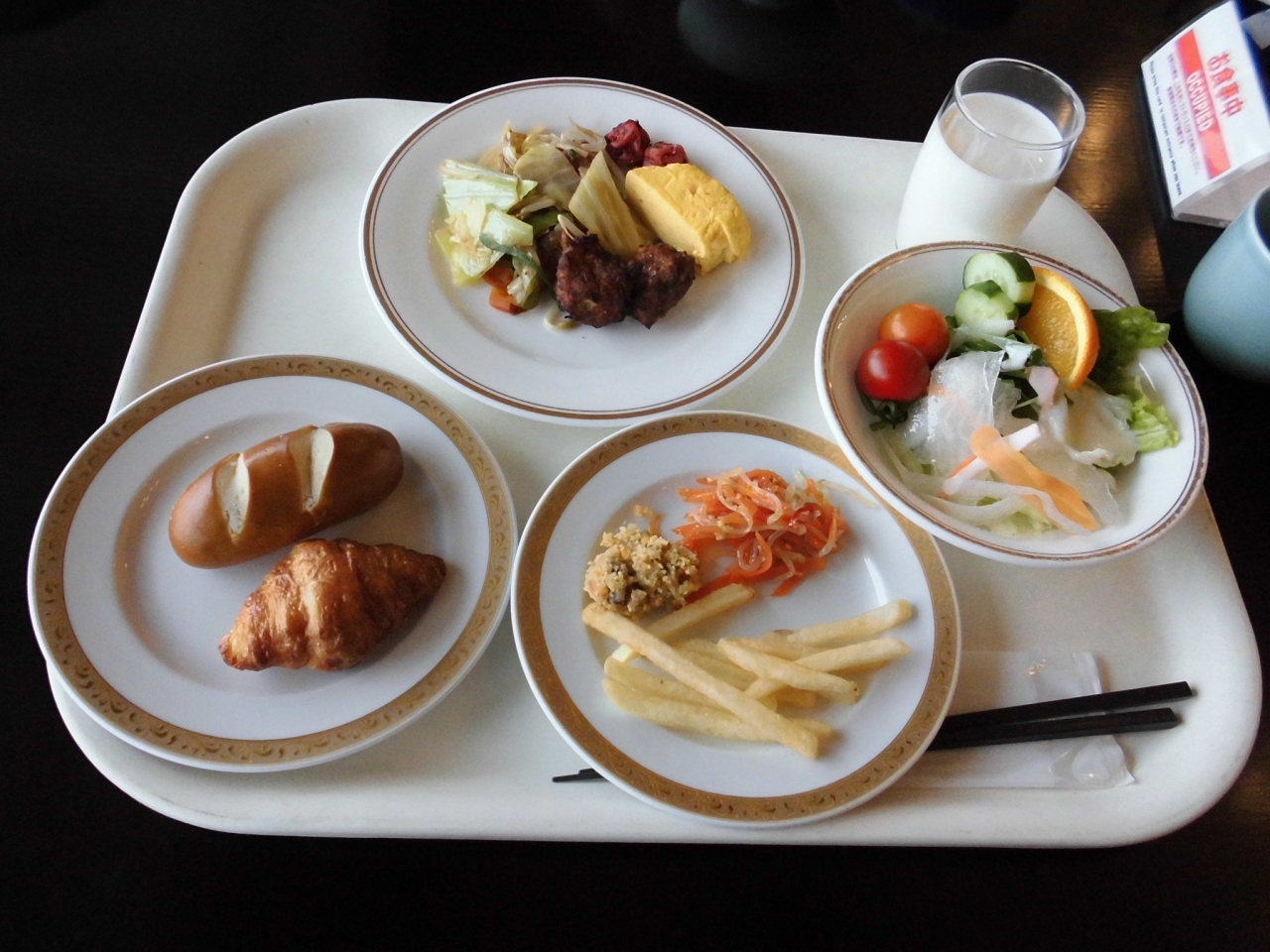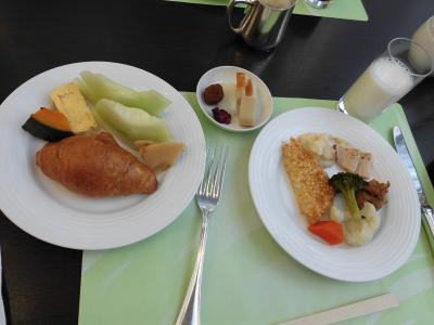 朝食は、和洋バイキングになっていますがどちらかというと洋の料理が多いと思います。私はパンが好きなので朝はクロワッサンと牛乳がメインです。美味しいパンですが1個しか食べられなくていつも残念です。もう少し小さいと2種類食べられるのに・・・。
