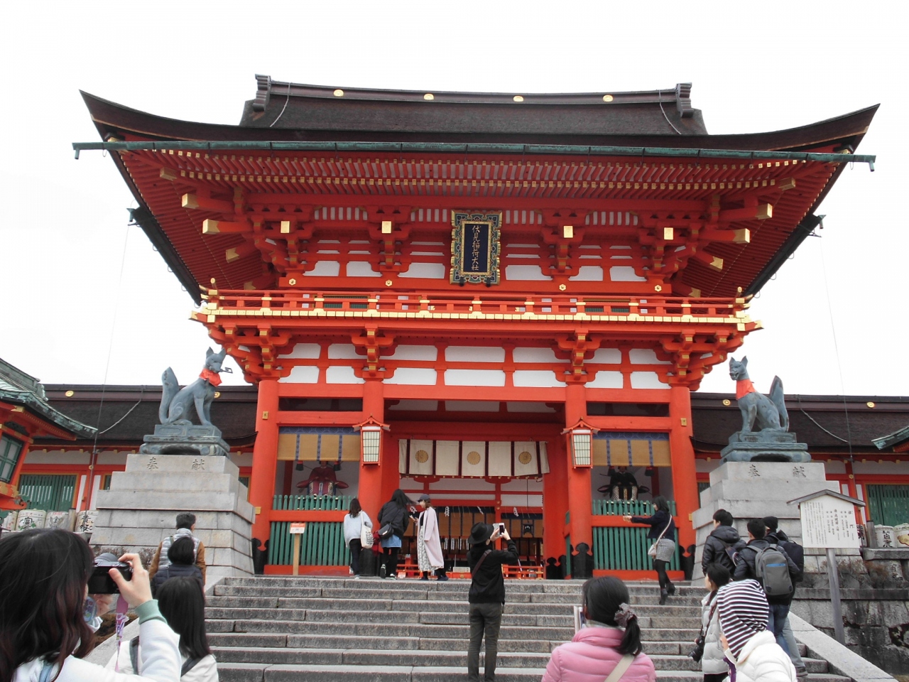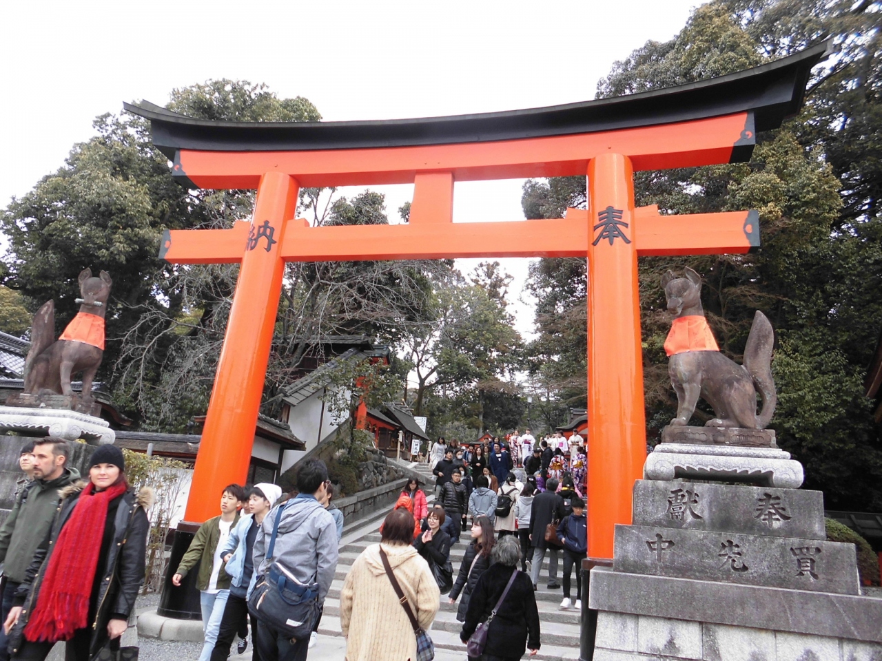 数年ぶりに行きました。京都駅から2駅でJRの稲荷駅からすぐなのでわかりやすいです。以前行ったときは人も少なくて静かな感じでしたが、今回行ってびっくり、平日でもすごい人でした。着物姿の外国人が多かったです。今、外国人に1番人気ある神社だということです。人気は、千本鳥居だと思いますが、前回も今回も途中までで断念しました。