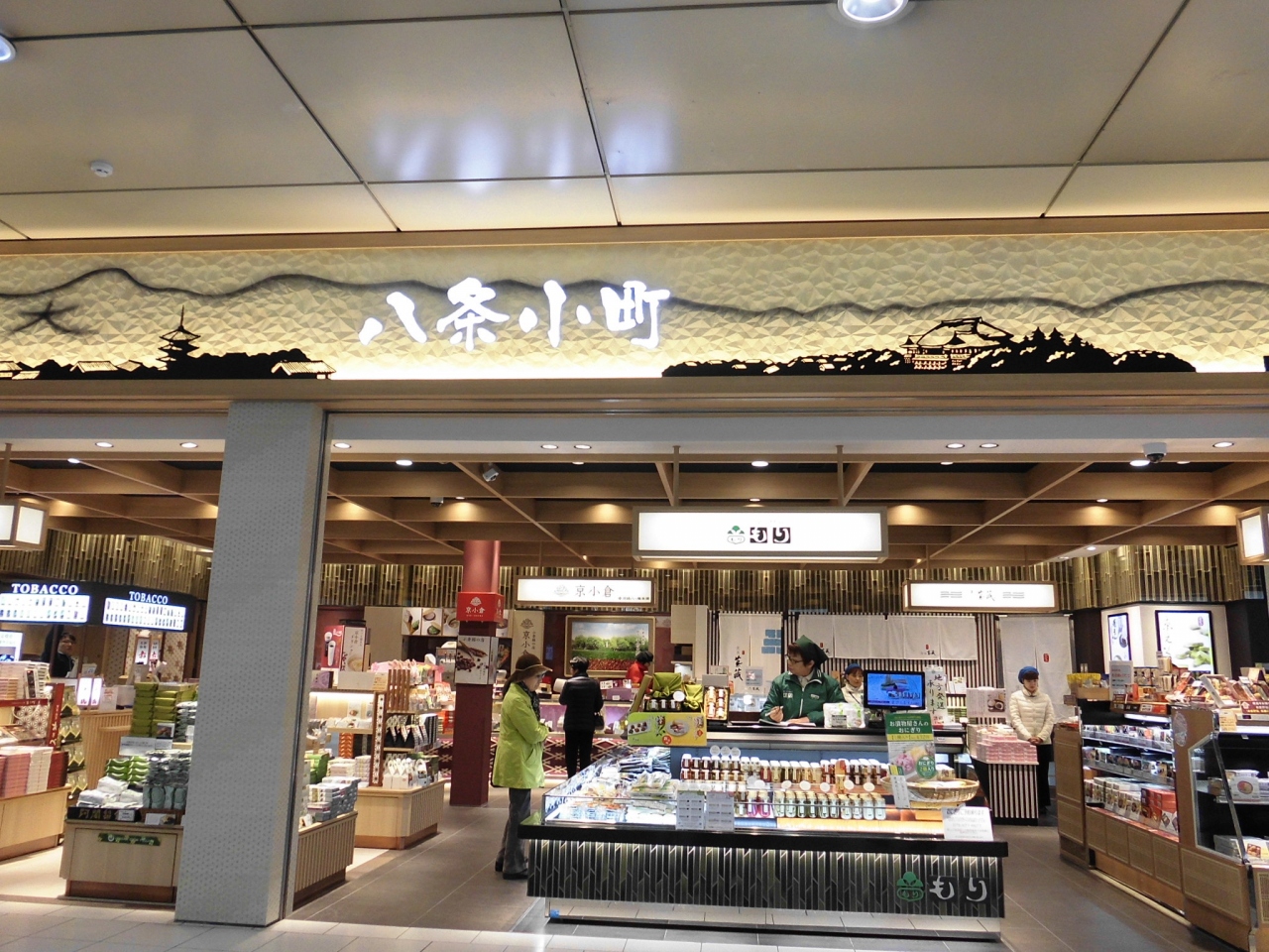 京都駅の八条口の方にあるショッピングモールです。京都名物のお土産屋美味しい物がいろいろあります。カフェやレストラン、パン屋さんなどが目につきました。きれいな小物や名菓八つ橋など何でもある感じです。ちょっとランチをいただくのにも便利なと頃です。私は八つ橋の試食をして見ました。生八つ橋の種類がたくさんあり増すがやはり小豆が好きです。クッキーみたいになっている野g珍しくて買いましたが、何となく八つ橋と違う感じです。