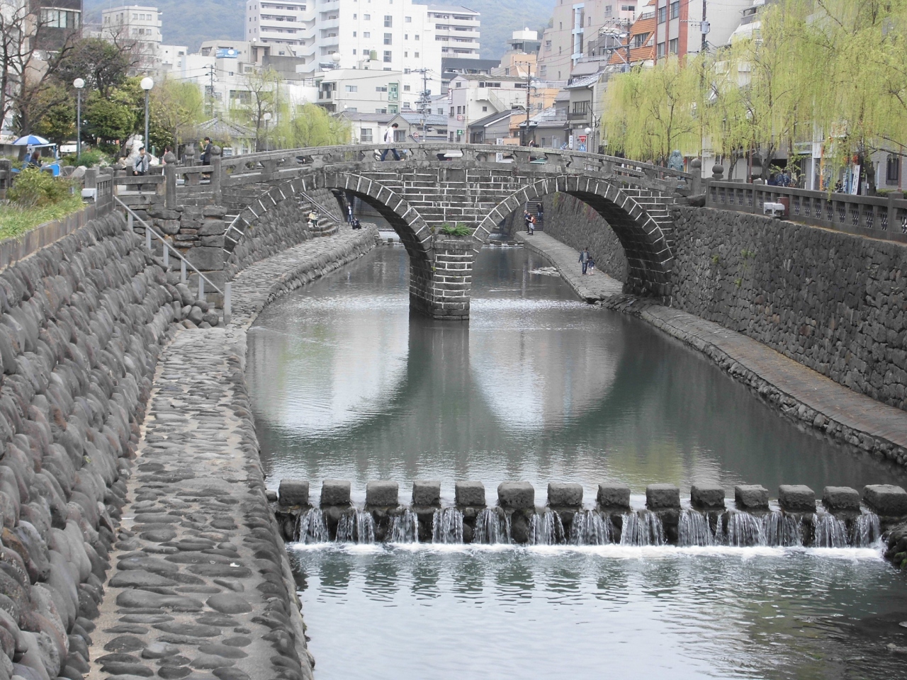 テレビや旅行誌でよく見るので一度行って見たいと思っていました。長崎には何度か行きましたが眼鏡橋をゆっくり観光したことはなかったのでよかったです。日本発のアーチ式石橋として有名です。川面に映った影が双円を描きめがねに見えることから名前がついたといわれています。