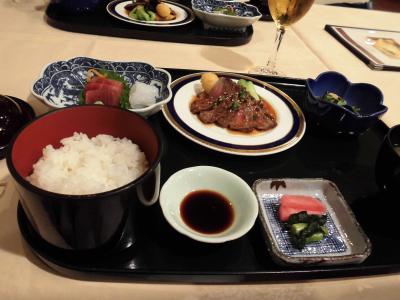 友人は牡蛎フライ定食を私はステーキ定食をいただきました。ホテルで定食というのはちょっと珍しい感じですが、いいところを見つけました。泊まっていたセレスティンホテルから歩いてすぐだったので夜でも平気でした。