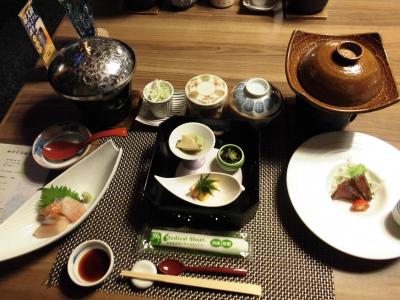 食事処「木挽き亭」でいただいた夕食は見た目もきれいで美味しかったです。朝食はバイキングを「なべ茶亭」でいただきました。目の前で握ってもらうおにぎりや、焼きたてトーストなど心のこもった朝食でした。食事処がゆったりとしていい雰囲気でよかったです。
