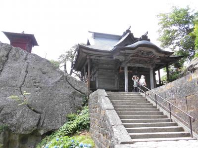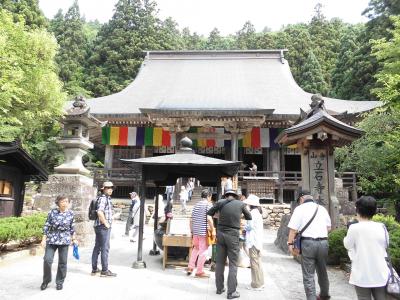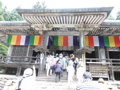 ずっと前に東北ツアーで「山寺風雅の国」に桜を見に行ったとき、真向かいの山に古いお寺が見えていました。山寺という名前にぴったりのたたずまいで是非行って見たいと思っていたところ、今回東北ツアーの行程に入っていたので即申し込みました。