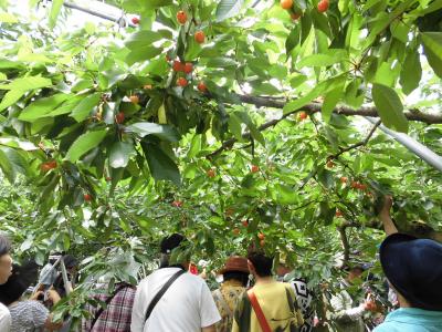 サクランボはたくさんありましたが、「佐藤錦」が美味しいと教えてもらいました。佐藤錦には黄色いリボンが目印にしてあって、分かりやすかったです。大きくて真っ赤に熟れたサクランボはとても甘くて美味しかったです。こんなにたくさんサクランボを食べたのは初めてでした。30分食べ放題だったけれどすぐにお腹いっぱいになりました。