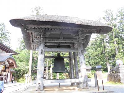 大きな鐘楼と鐘(建治の大鐘)があり、これも国の重文になっているそうです。山伏山がホラ貝を持って出てこられ田のが珍しかったです。高下駄のはが一本でした。