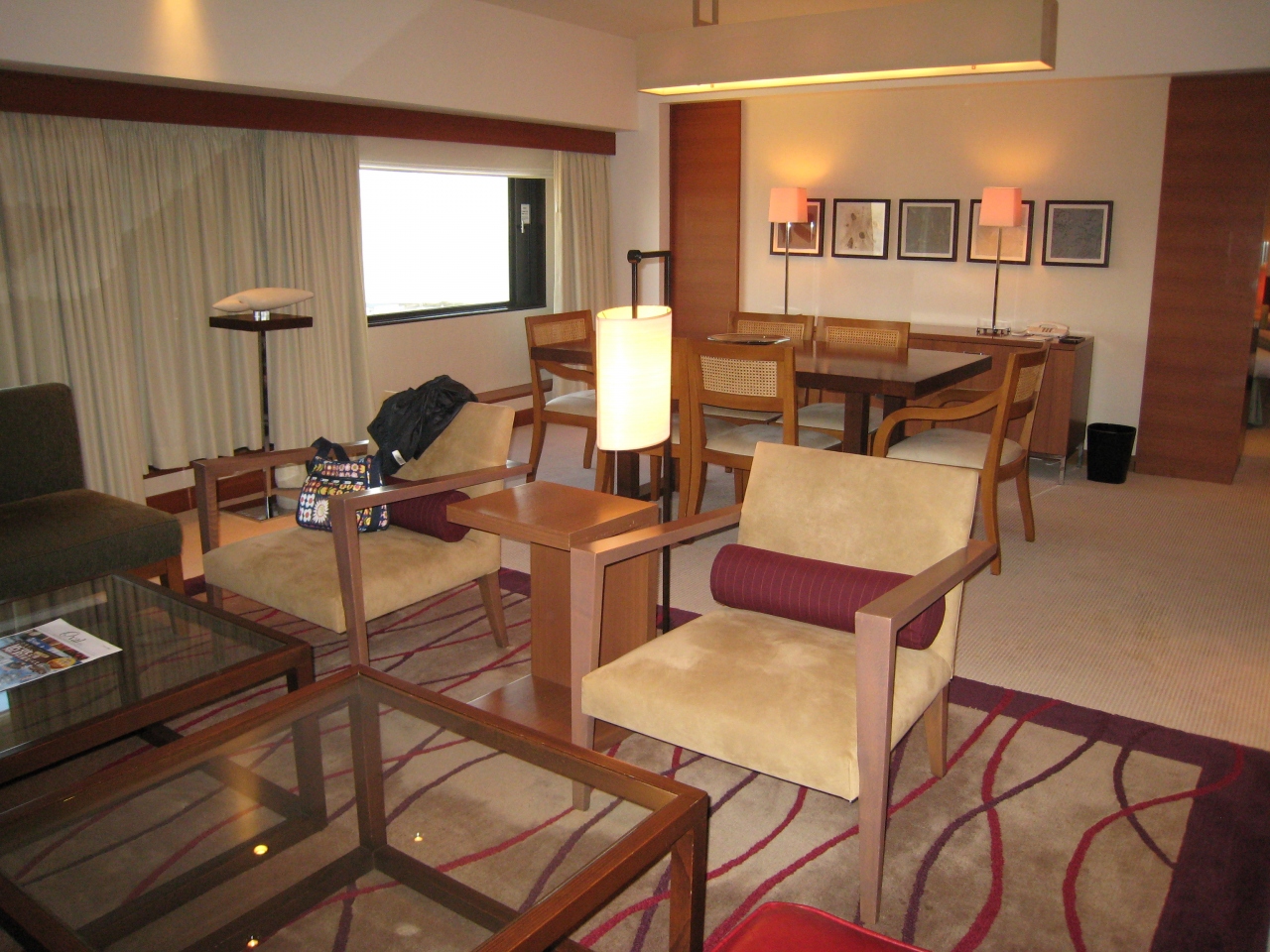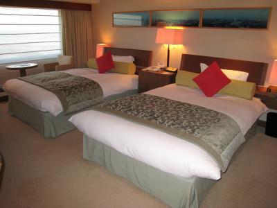 部屋はとても広くて寝室と居間が別になっています。お風呂やトイレも使いやすくて居心地よく過ごせました。カクテルタイムには夜景を眺めながらビールとお料理をいただいてくつろぎました。あまり人がいなくて静かだったのでよかったです。