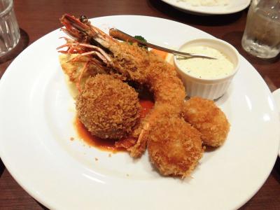 コロッケは評判通り色が茶色で蟹の香りが濃かったです。大きなエビフライと大好きなホタテフライも食べられて大満足のランチでした。