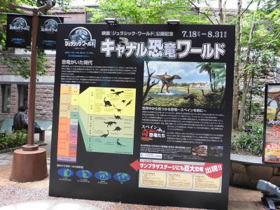 キャナルシティの広場で映画「ジュラシックワールド」公開記念のイベントが開催中でした。運河に沿ってジャングルらしい雰囲気が作られ、恐竜たちが声をあげていました。