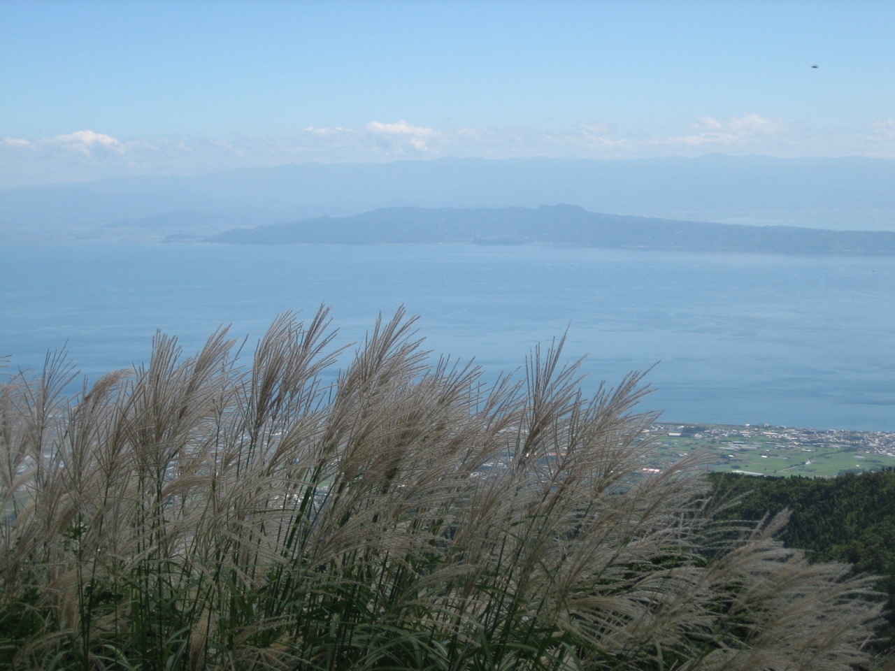 ロープウェイで上に上がりました。(妙見岳)ロープウェイを降りてまた少し上りました。上からの眺めはすばらしかったです。普賢岳がすぐそばにに見えて迫力でした。