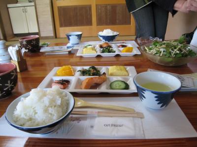 翌朝、錦帯橋を散策したりして朝食をいただきました。朝は、担当の方が違う人で、とても感じのよい対応でした。朝食も美味しくて昨日の不愉快な気分が一掃できました。