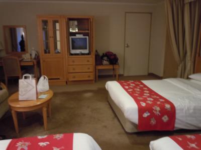部屋は3人でも余裕の広さで、きれいでした。ランチが遅かったので、夕食は食べませんでしたが、宿泊者はお得な料金になっているようです。朝食は和洋バイキングで、地元の野菜や、近江牛丼、お茶漬けバイキングなど充実していました。