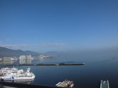 海の方を見ると遠く四国(?)が見えました。戻ってからランチをするのにちょうどよい感じでした。