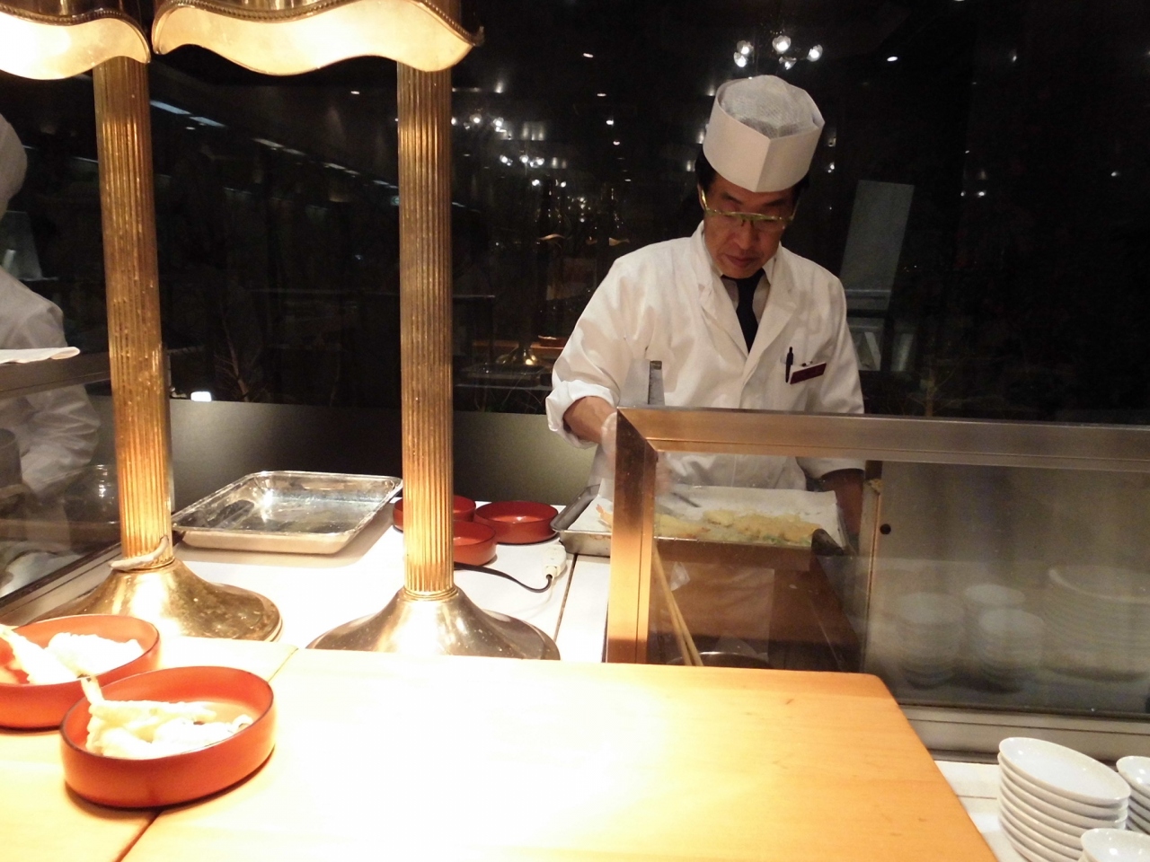 レストランのスタッフの方は常に笑顔でてきぱきと動いておられ、静かな中に生き生きとした雰囲気のレストランだと思いました。天ぷらや寿司、ローストビーフなど目の前で料理をされるので、できたてが食べられます。
