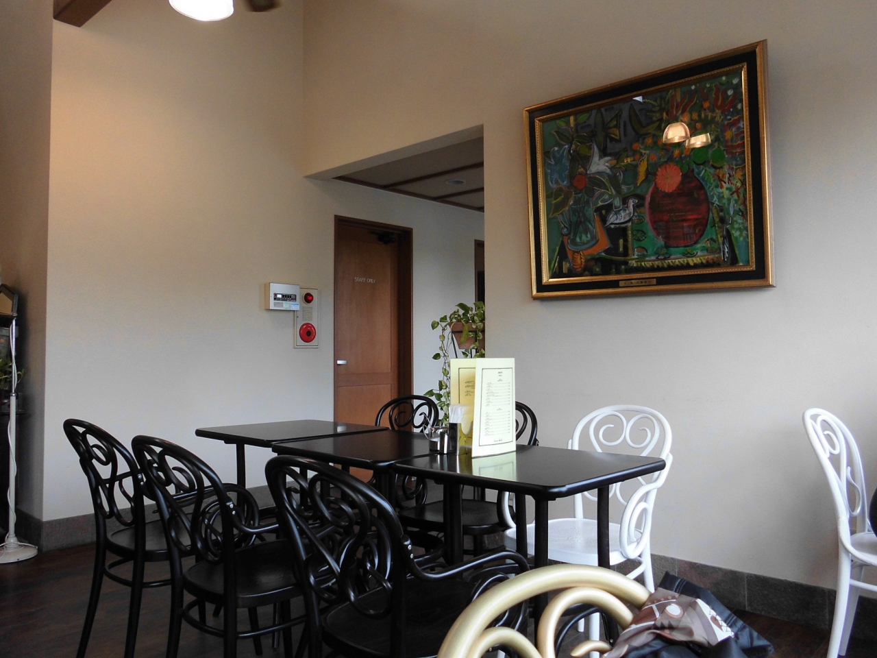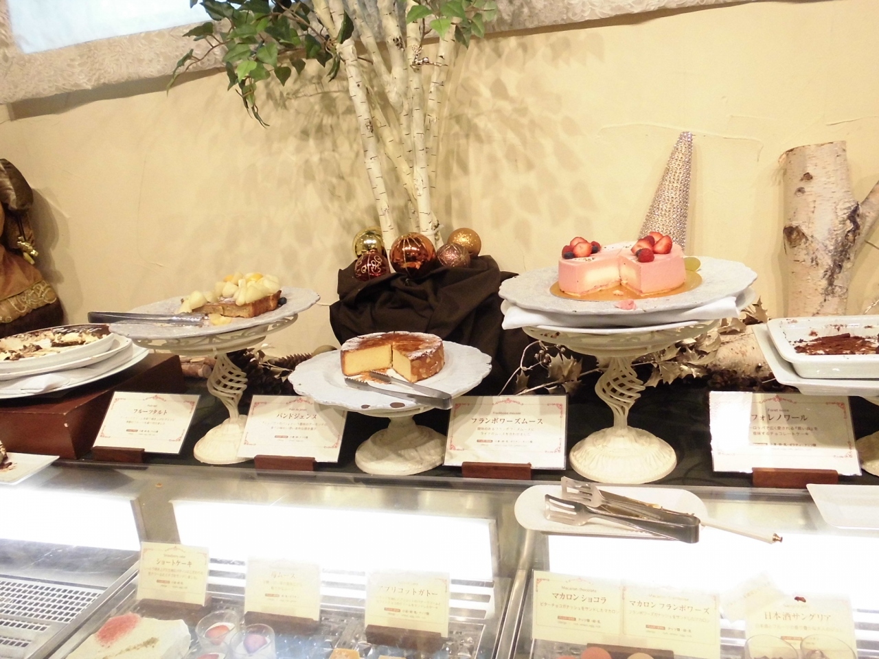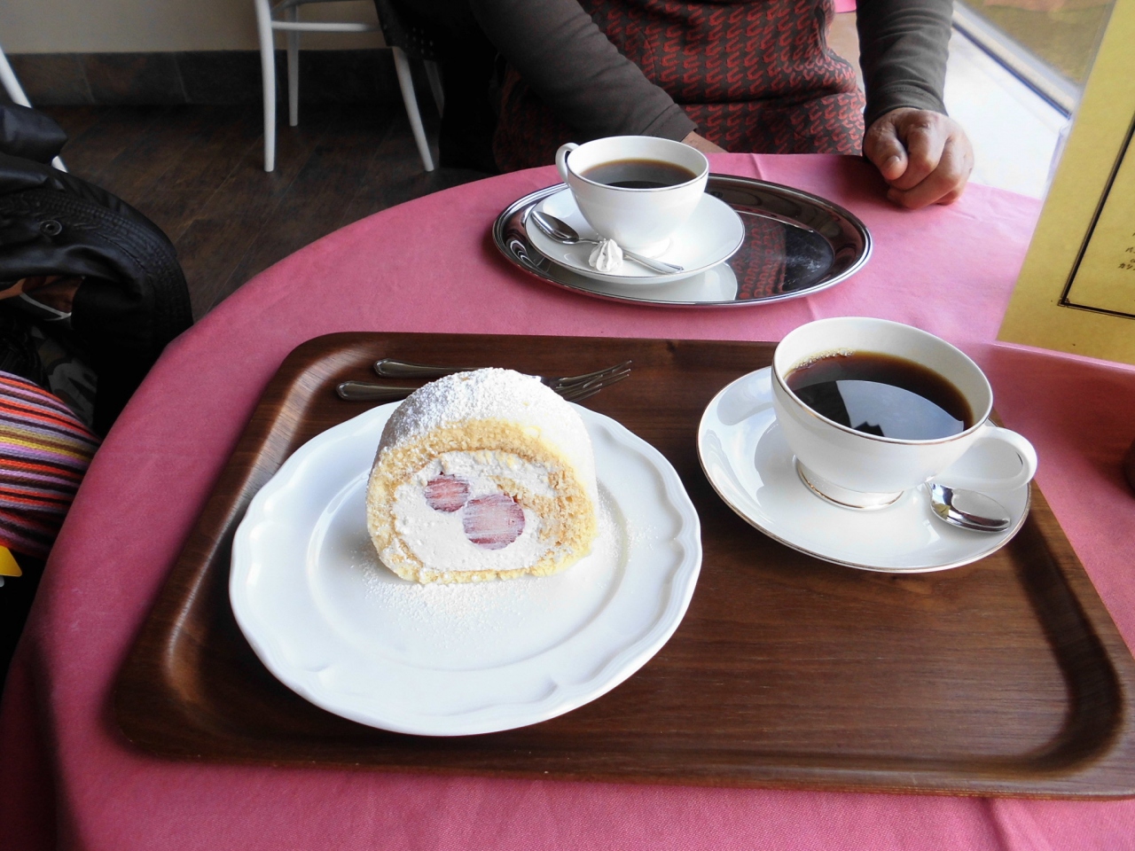 天井が高くて、ゆったりとした感じが落ち着きます。ショーケースに並んだケーキが美味しそうで、苺ロールを注文しました。大きかったので1個を二人で食べました。