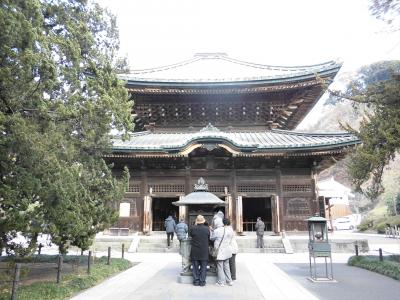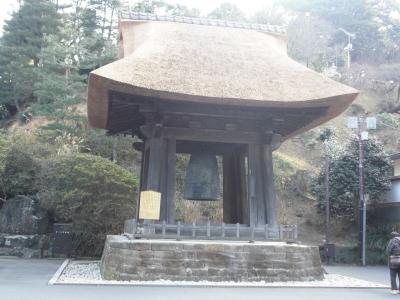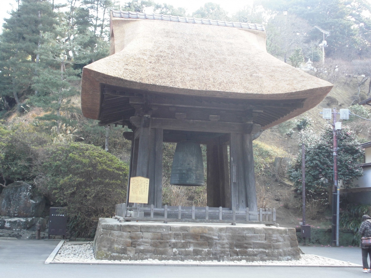 向かって右側に茅葺きの鐘楼につるされた巨大梵鐘は、国宝に指定されているそうでとてもどっしりとしています。どんな音がするのかなあと聞いてみたい気がしました。梅の花が少し咲いていていい雰囲気でした。春の桜も美しいそうです。