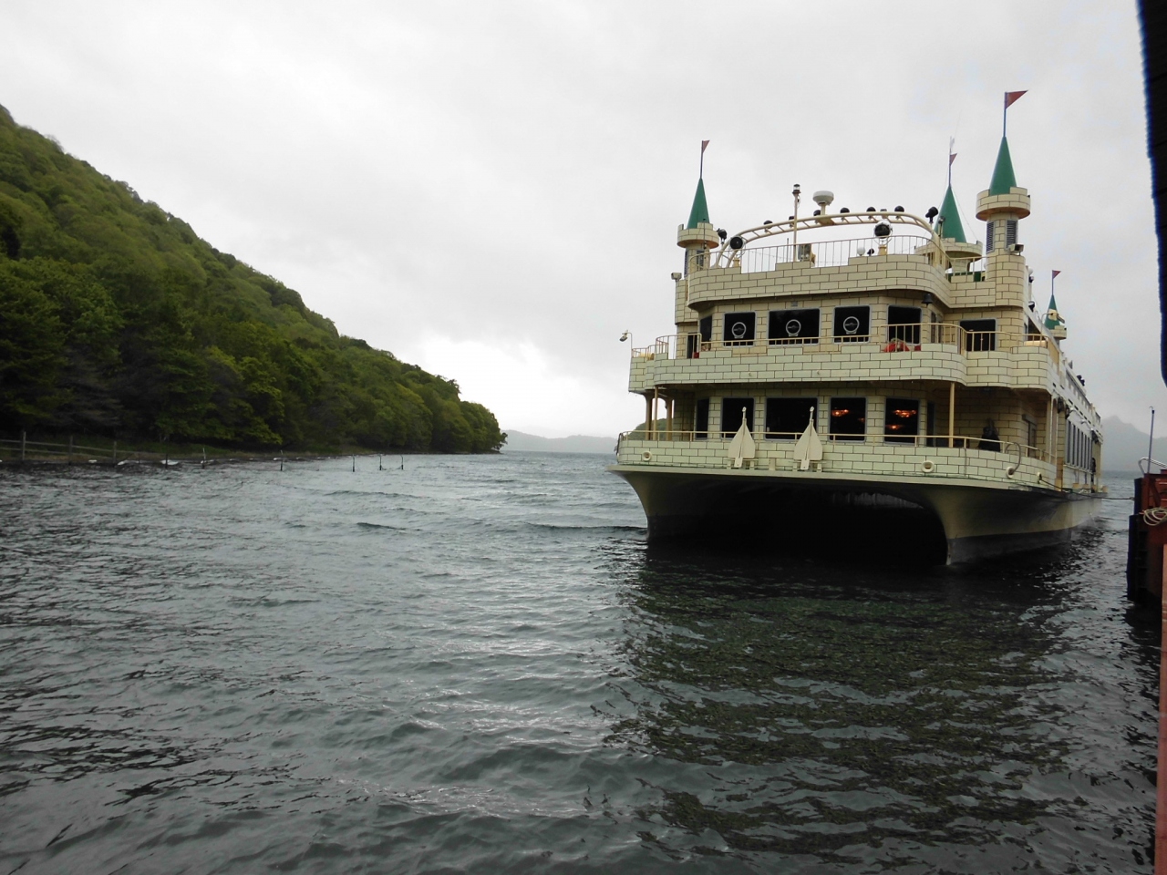 私が乗ったのは「羊蹄」で、定員は500名だそうです。乗客は少なくてゆっくり座って景色を見ることが出来ました。中島で下船した後、次の舟で戻りました。「エスポワール」というお洒落で大きい舟です。エスポワールは、時間帯によってランチクルーズ、夜は花火鑑船として活躍します。