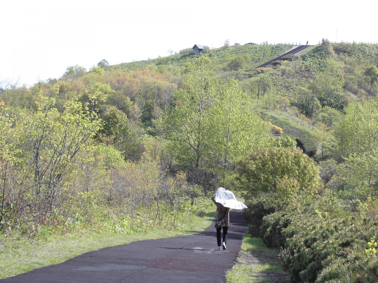 有珠山ロープウエイで上ったところに洞爺湖展望台があり、そこから10分弱歩くと有珠山火口原展望台があります。そこから外輪山遊歩道がありますがそこまで行った事はありません。40分くらい歩いて外輪山展望台があるそうです。途中600段くらい階段があるということです。
