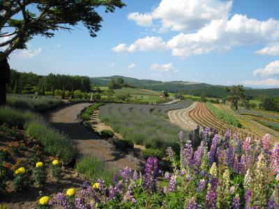 5月から10月までいろいろな花を見ることが出来ます。私たちが行った6月はラベンダーが咲き始めたところでした。丘の町美瑛の名前通りここは花畑と芝生の丘で深呼吸がしたくなるような所です。